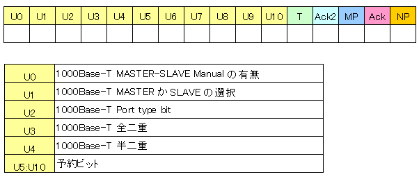 Masterとslaveかの記述がある。 そして1000BaseTの全二重か半二重かの識別するビットもある。 |