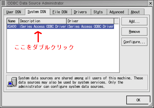 この時点では、ODBC経由でのAS400への接続がうまくいきませんでした。