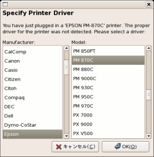 プリンターのUSB接続すると、自動的に認識してくれた。