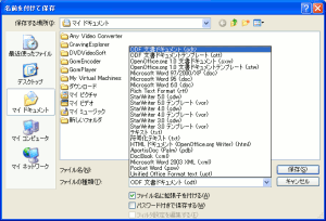| OpenOfficeのwriterで他のファイル形式で保存する様子 |